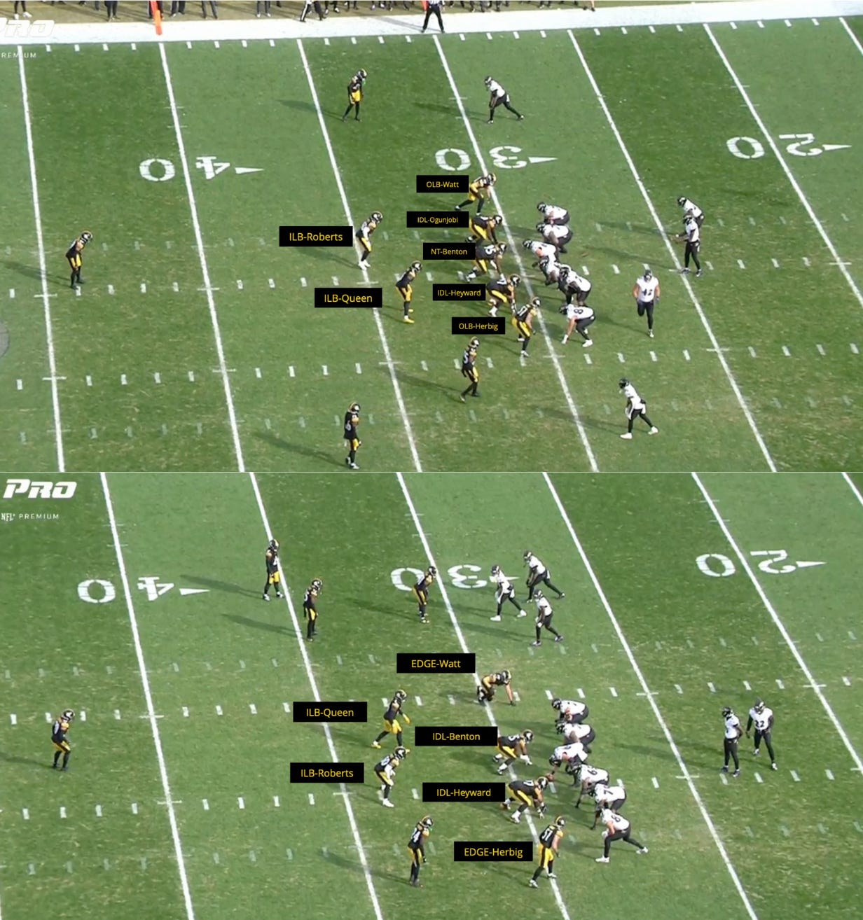 Outside of some sub fronts, nickel packages tend to have 4 bodies on the DL regardless of base system. This is for pass-rush purposes.